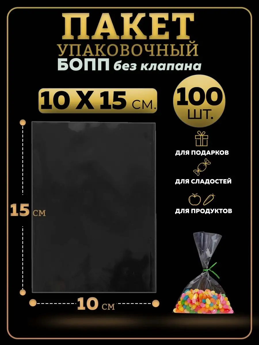 БОПП пакеты упаковочные 10х15, 100 шт.