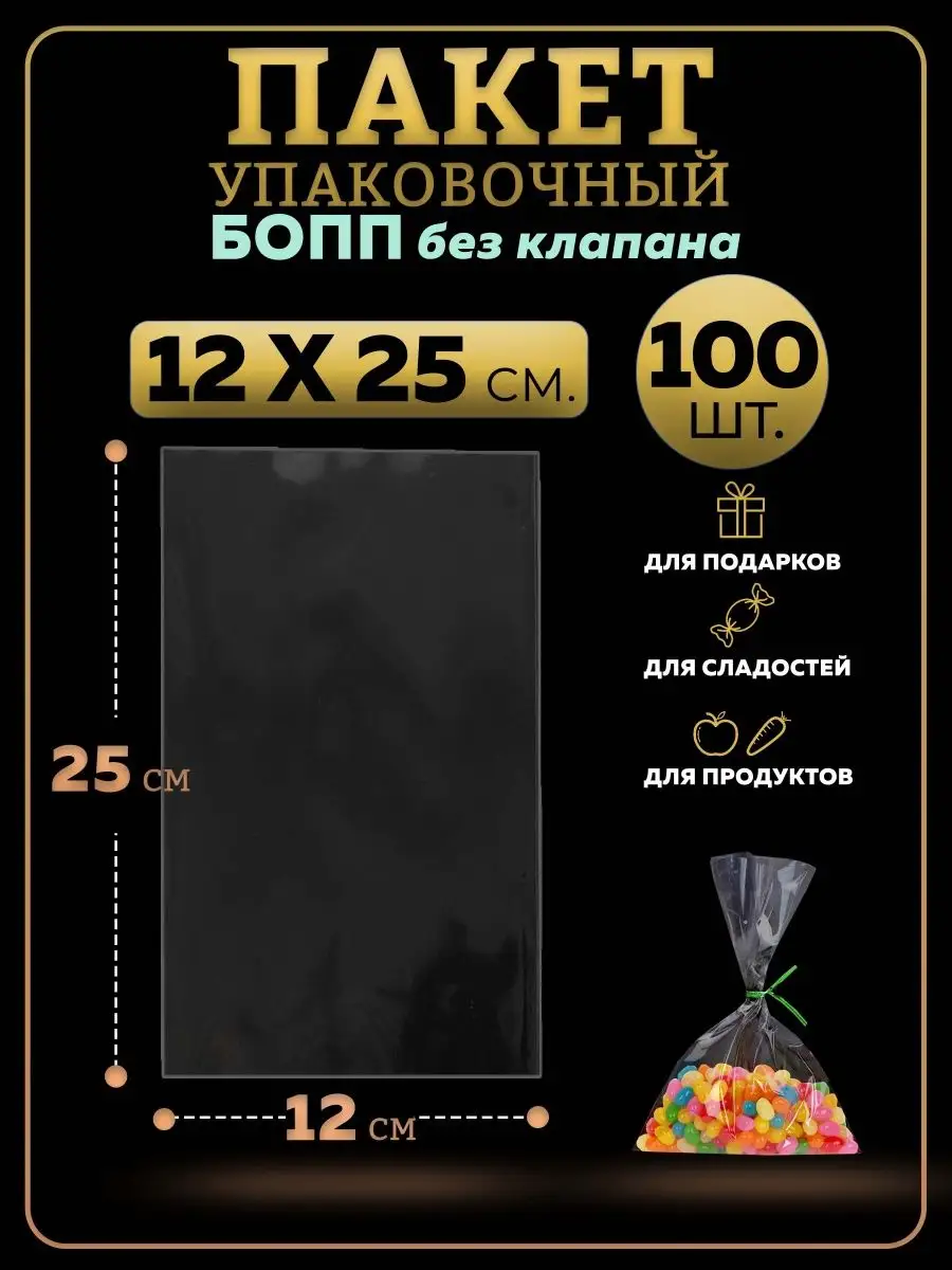 БОПП пакеты упаковочные 12х25, 100 шт.