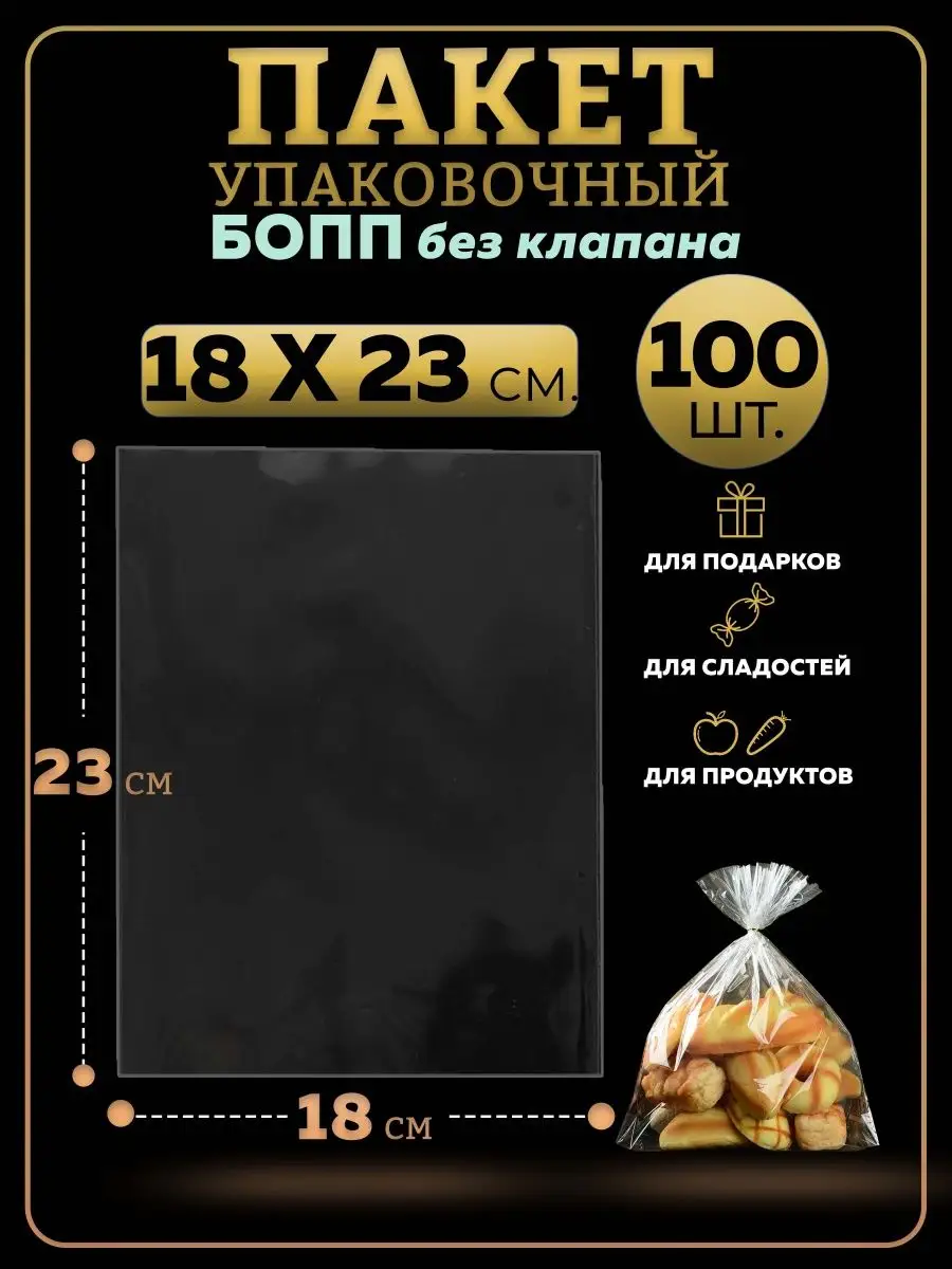 БОПП пакеты упаковочные 18х23, 100 шт.