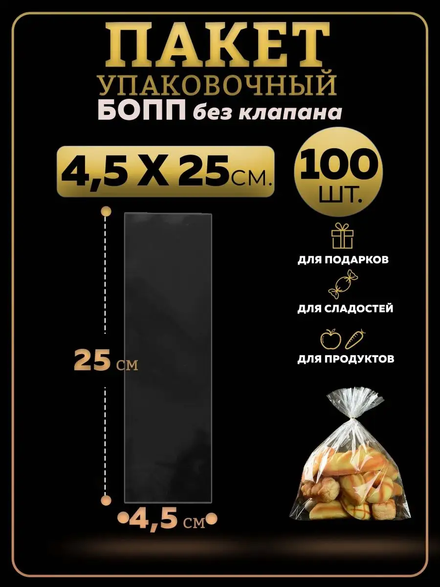БОПП пакеты упаковочные 4х25, 100 шт.