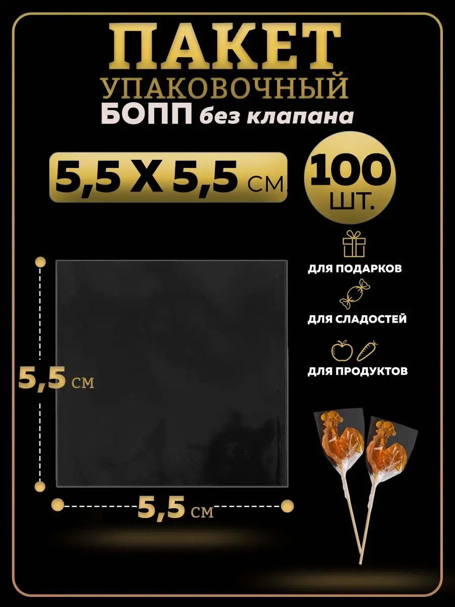 БОПП пакеты упаковочные 5х5, 100 шт.