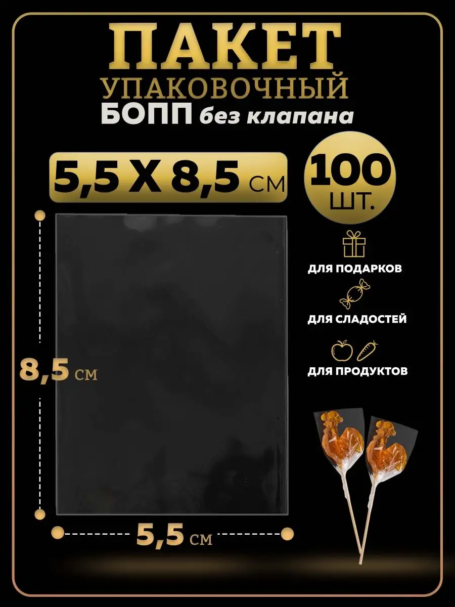 БОПП пакеты упаковочные 5х8, 100 шт.