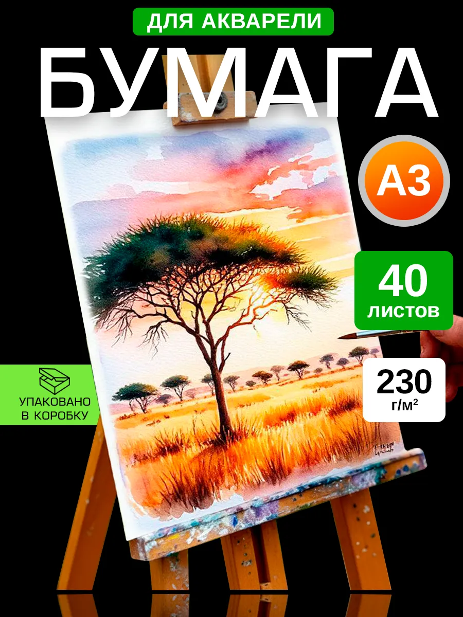 Бумага для акварели А3 230 гр/м2,30 листов.