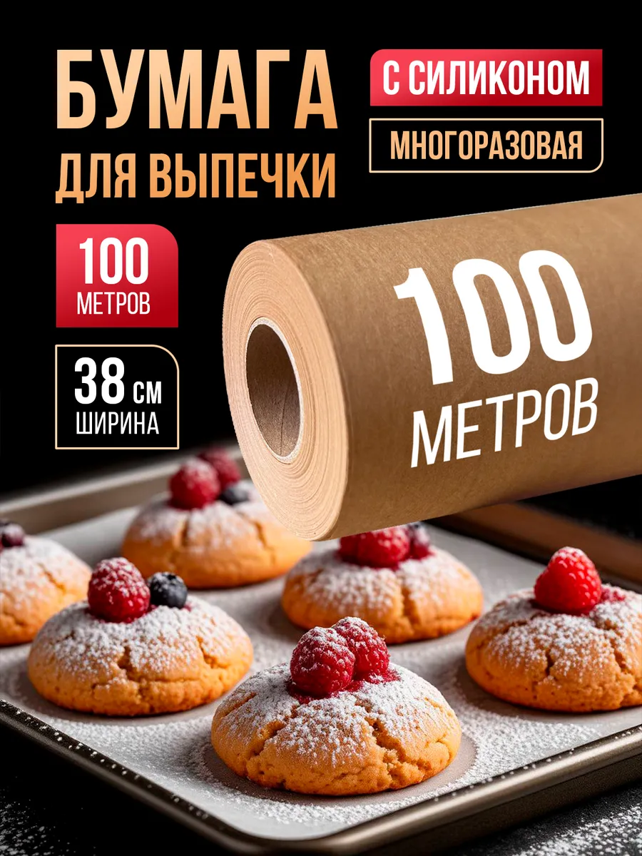 Бумага (пергамент) для выпечки силиконизированная 100 м, 1 рулон 38 см. Белый. Бумага для выпечки силиконовая профессиональная. Покрыта с двух сторон пищевым силиконом, что позволяет готовить без использования масел, жиров и маргарина. Подходит для многократного использования. Бумага для выпечки силиконизированная используется для выпечки и приготовления различных блюд из мяса, рыбы или овощей. Пергаментная бумага изготовлена из экологически чистого и абсолютно безвредного для здоровья материала. Пергаментная бумага с силиконом широко применяется не только на профессиональных пекарнях, но и на домашних кухнях. Идеальна для запекания мяса, рыбы, птицы и овощей в собственном соку. незаменимый помощник на вашей кухне. Она идеально подходит для приготовления любой выпечки, будь то хлеба или изысканный торт. Этот пергамент для выпечки обладает впечатляющими характеристиками: он не прилипает к тесту и форме, предотвращая пригорание, что делает процесс выпекания легким и приятным. Пергамент для выпечки силиконизированный препятствует пригоранию и прилипанию выпечки к посуде, что позволяет значительно сократить время чистки противня и духовки. Кроме того, может использоваться в качестве упаковки для замораживания стейков и мяса и рыбы, а также для раскатывания теста. Наша бумага для выпечки с силиконовым покрытием плотней импортных аналогов, что позволяет использовать ее при температуре до 220°С. Состав: 100% целлюлоза, 100% пищевой силикон. Ширина: 38 см. Приобретайте для своей кухни этот качественный пергамент силиконизированный и наслаждайтесь готовкой с легкостью и удовольствием!