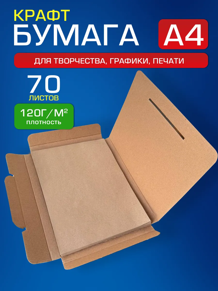 Крафтовая бумага А4 (210х297 мм) плотностью 100гр./м2, 80 листов - идеальный выбор для воплощения ваших творческих идей. Вся бумага упакована в жесткую картонную папку, что гарантирует ее целостность. В нашем ассортименте найдете подходящую для Вас бумагу плотностью и формату А3 и А4. Создавайте уникальные подарки, оформляйте альбомы для скрапбукинга, мастерите оригами или просто делайте красивые рисунки. Бумага устойчива к истиранию, что обеспечивает чистую и реалистичную передачу цвета при создании графики, эскизов или писем и подходит для создания уникальных упаковок. Благодаря универсальности, крафт бумага для цветов и аппликаций также подходит для квиллинга и оригами. Используйте крафт-бумагу для создания ярких и запоминающихся работ – она легка в обращении, приятная на ощупь и удобная в работе. Позвольте себе раскрыть свой талант и фантазию с помощью крафт-бумаги А4 – и каждая ваша работа станет настоящим произведением искусства