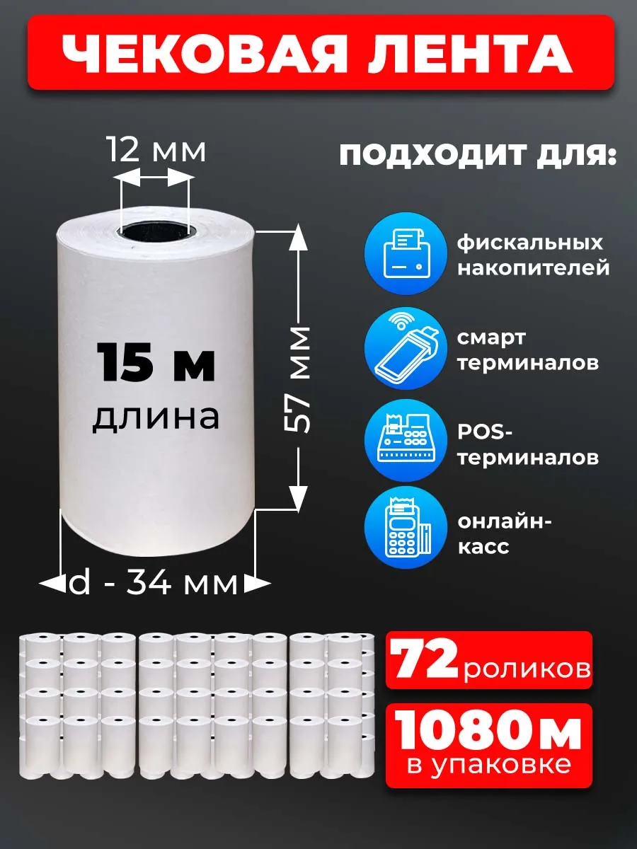 Чековая лента 57 мм -длинна рулона 15 метров -72 ролика, в различных комплектациях таких как 18/36/72/144рулона по очень приемлемой цене. Сигнальная лента- есть - за 50 см. до конца Вы найдете в нашем ассортименте. Чековая лента 57 мм применяется для кассовых аппаратов, платежных терминалов самообслуживания, банкоматов и т.п. Диаметр рулона: 34мм. Диаметр втулки: 12 мм. Плотность бумаги: 46 г/м2. Термослой: наружу. Сегодня сложно представить современный магазин или торговый центр без кассовых аппаратов. Они нужны для ведения отчетности, выдачи гарантии и чеков покупателям. Чековая бумага сделана из качественных безопасных материалов. Кассовая лента изготовлены на современном оборудовании, обеспечивающем ровную намотку и отсутствие бумажной пыли. Лента кассовая 57 мм идеально подходит для онлайн касс: Атол, ICASH, Пирит, Эвотор, СПАРК, Меркурий, ПРИМ, Штрих и др., квитанции в pos-терминалах при наличных и безналичных расчетах банковской картой и при использовании эквайринга и мобильных касс в магазинах, заведениях, курьерских службах, всех сфер услуг и торговли. Кассовая лента 57 мм подходит для всех современных POS терминалов: Ingenico, Verifone, PAX и др. А так же чек лента подойдет для онлайн касс: Атол, ICASH, Пирит, Эвотор, СПАРК, Меркурий, ПРИМ, Штрих и др. Кассовая бумага позволяет получить печать чека высокого качества и продлевают срок службы оргтехники. Чековая лента надежно упакована, спайка защищена от влаги термоусадочной полиэтиленовой пленкой. Бумага белая, Кассовые ленты подходят для аппаратов, в которых для переноса печати используется нагрев. Такую кассовую ленту легко поменять. Используется как контрольно-кассовая лента. Цвет печати - черный Кассовая лента / чековая лента / термобумага. "чековая лента 57 мм,чековая лента 57,чековая лента 57*40*12,чековая лента 57*30*12,чековая лента 57*6012,чековая лента 57*40,чековая лента 57*17,чековая лента 57*30,чековая лента 57*60*12,чековая лента 57 мм 40м,кассовая лента 57.