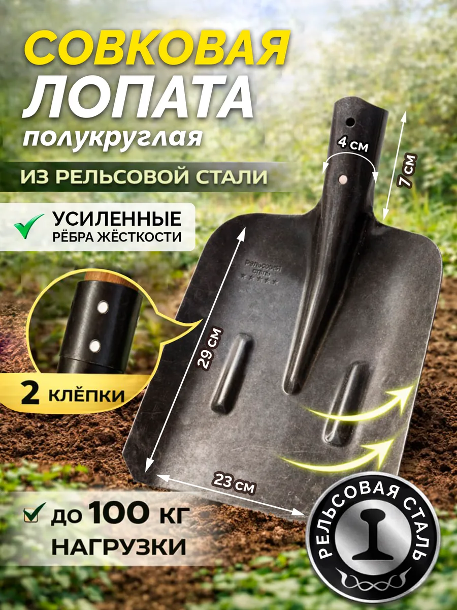 Лопата совковая полукруглая усиленная без черенка из рельсовой стали. Производство Китай.