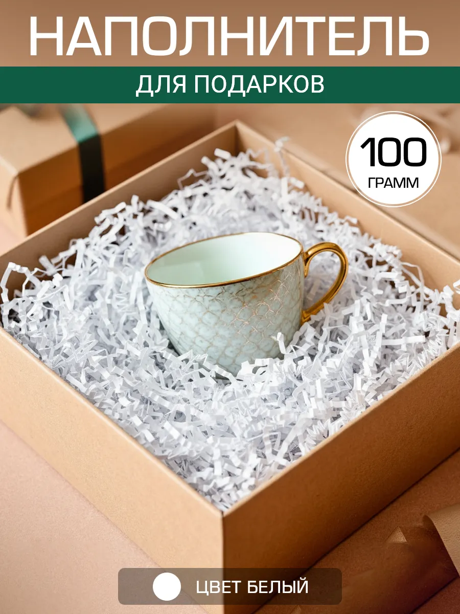 Наполнитель гофрированный для подарков и коробок белый 100 грамм.