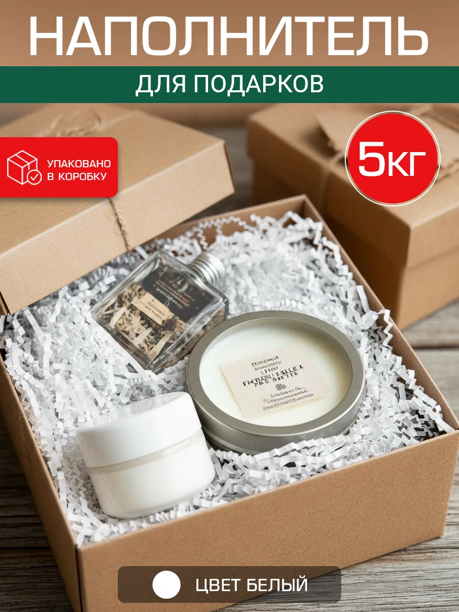 Наполнитель гофрированный для подарков и коробок белый 5 кг.