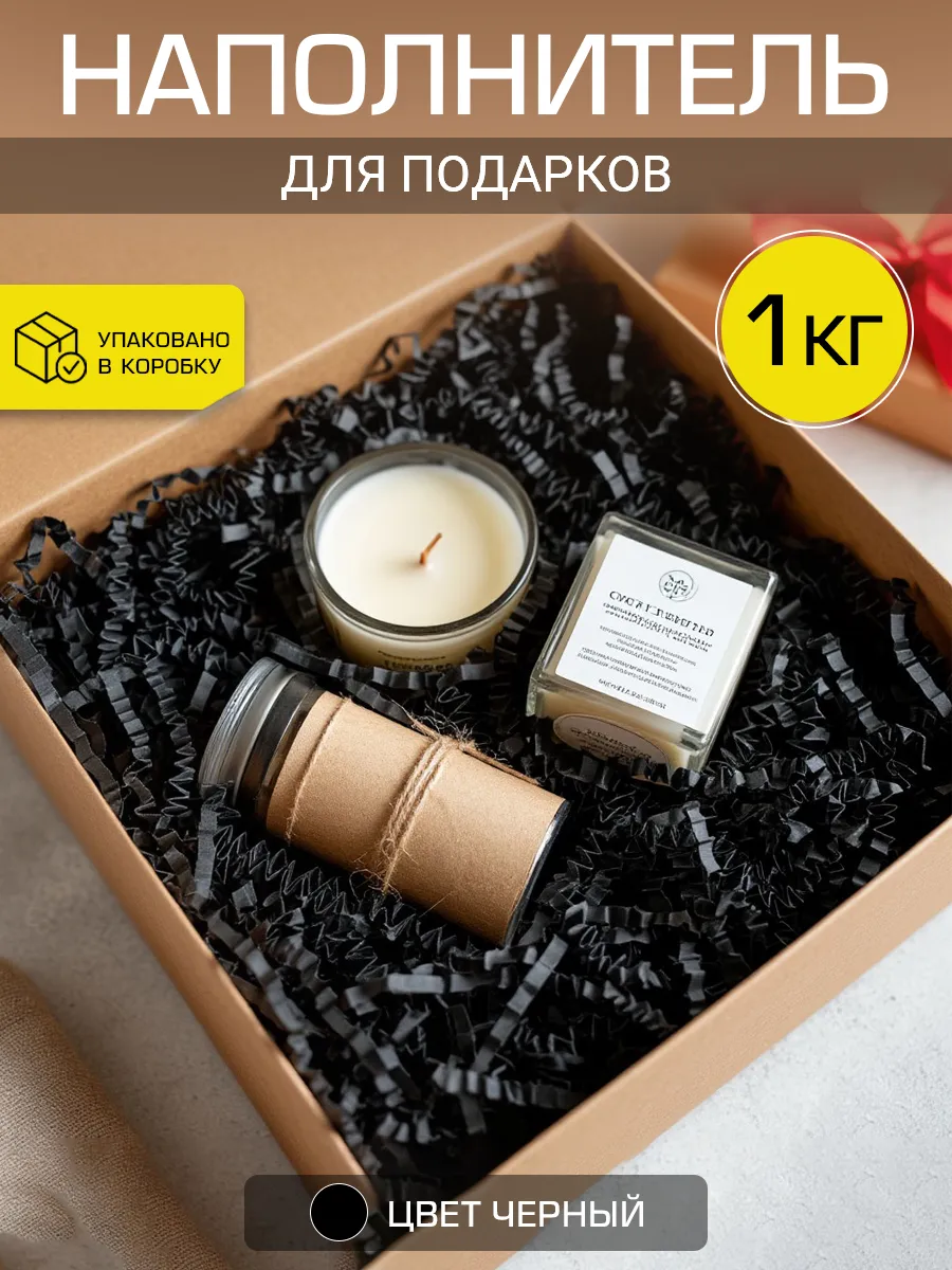 Наполнитель гофрированный для подарков и коробок черный 1кг.