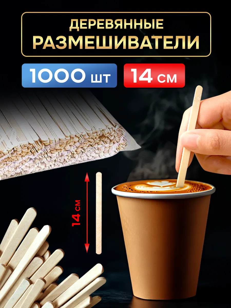 Одноразовые палочки для кофе деревянные размешиватели 14 см, 1000шт.