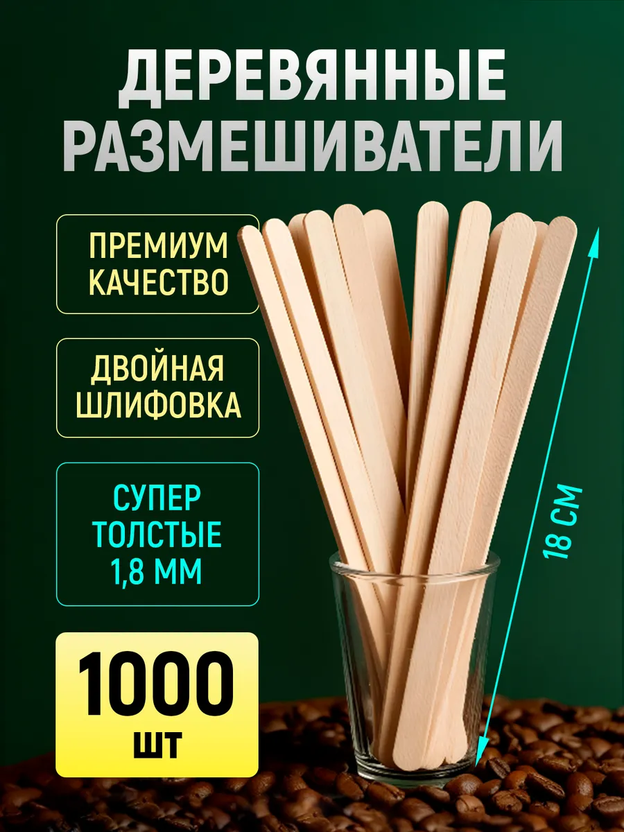 Деревянные размешиватели — экологичное и универсальное решение для кофе, чая, десертов и не только. Размер размешивателя Длина-18 см, толщина-1,8 мм, Ширина - 6мм. с двойной шлифовкой. Очень гладние. Одноразовые палочки изготовлены из прочного, экологически чистого дерева. Двойная шлифовка обеспечивает гладкость поверхности без заноз и сколов, делая использование безопасным и приятным. Размешиватели подходят для горячих и холодных напитков, не влияют на вкус, устойчивы к перепадам температур и отлично сочетаются с одноразовыми стаканами. Лёгкий вес и эргономичная форма делают их особенно удобными при ежедневном использовании. Применение: для кофе, чая, коктейлей, мороженого и десертов; для дома, офиса, кафе и выездных мероприятий; в качестве одноразовых шпателей для шугаринга или косметических процедур; как элементы для творчества и поделок. Деревянные размешиватели легко перерабатываются и безопасны для окружающей среды. Доступны в комплектах по 250 и 1000 штук — отличное решение на каждый день. Выбирайте надёжные, многофункциональные и экологичные палочки — и наслаждайтесь комфортом в каждой детали. мешалка, мешатели, для размешивания.