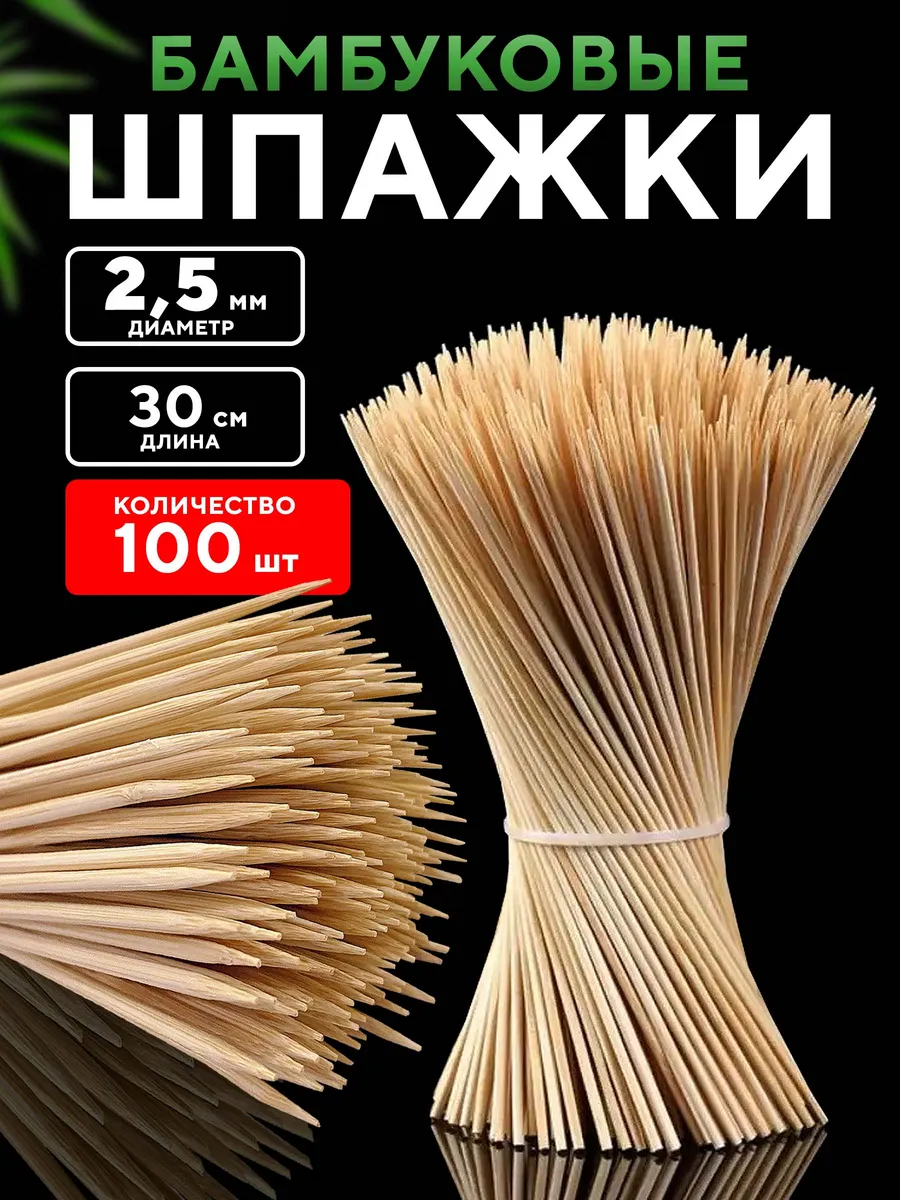 Шпажки деревянные длинные бамбуковые 100 шт. отличный выбор для любого любителя гриль-вечеров или профессионального повара. В нашем ассортименте широко представлены для различных кулинарных целей - гриллинга, декораций, канапе и украшая сьедобные букеты. Обычно отдыхающие для этих целей используют шампуры, вертел, гриль или аэрогриль. Бамбуковые палочки активно используются в кулинарии для приготовления канапе и шашлыков. Куриные, рыбные или мясные шашлычки на шпажках, а также запеченные овощи могут с лёгкостью стать вашим коронным блюдом, они улетают со стола мгновенно. У нас Вы можете приобрести купить деревяные шпажки разной длины: 15, 20, 25, 30см, 35 или 40 сантиметров предназначенные для разных целей. На 8 марта, день рождения, новый год или любой другой праздник можно сделать для любимого человека букет из сладостей. Набор шпажек из бамбука подходит для изготовления съедобных букетов, оформления тортов и других кондитерских блюд. Такая пика представляет собой одноразовый деревянный или бамбуковый шампур, заостренный с одного конца. Бамбуковые декоративные шпажки для канапе не только упругие, но в тоже время и эластичные. Формочки для канапе. Они не просто удобны для приготовления мяса, это ещё и украшение посуды, формы и подачи праздничных закусок к столу. Декоративные пики - это универсальный хозяйственный товар для постоянного применения в быту и дома. Они очень прочные, и более легкие, чем деревянные. Шпажки можно использовать для поделок и рукоделия. Благодаря шпажкам можно украсить любой праздничный стол