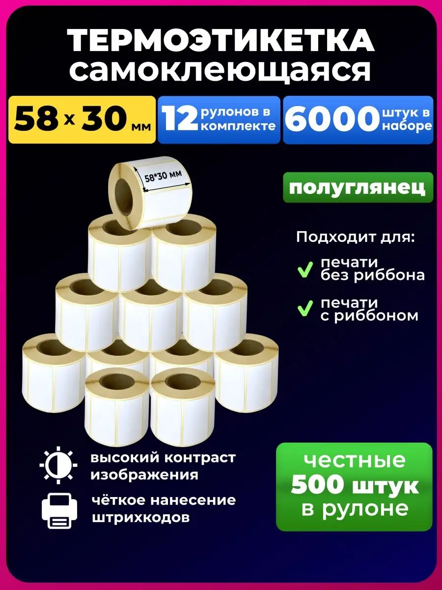 "Термоэтикетки 58х30 500 ЭКО без печати изготовлены из высококачественного материала. Рулон с втулкой диаметром 40 мм. Честных 500 этикеток в рулоне - это оптимальное решение для оперативной и экономичной печати информации, необходимой для маркировки различной продукции в том числе и маркировки товаров для маркетплейсов. Описание товара: Ширина этикетки -58 мм.; Высота этикетки - 30 мм. Такая термоэтикетка 58х30 мм ЭКО может выступать в роли носителя информации о товаре или же штрих-кода. Изготавливаются из белой бездревесной бумаги с термочувствительным покрытием. В нашем ассортименте Вы найдете широкую линейку размеров термоэтикеток. Размерный ряд: термоэтикетка 75х120, термоэтикетка 58х40, термоэтикетка эко 40х30, термоэтикетка 43х25, термоэтикетка 58х60, термоэтикетка 30х20; термоэтикетка 58х30;Термоэтикеток в рулоне - 500 шт.;Внешний диаметр рулона - 85 мм. Внутренний диаметр втулки - 40 мм. Количество рулонов в упаковке - количество роликов в комплекте указано на первом фото. Перейдя в профиль магазина Unzi, можно найти и подобрать другие размеры термоэтикеток, таких размеров как:58/30, 58/40, 58/60, 40/30, 75/120, 30/20, 43/25, 100/150, 58х30, 58х40, 58х60, 40х30, 75х120, 30х20, 43х25, 100х150.Всего этикеток в упаковке: указано на первом фото. Области применения термоэтикеток Unzi: термоэтикетки имеют самую широкую сферу применения отлично подходит для:- Для маркетплейсов: для маркировки товаров поставщиков маркетплейсов;- В магазинах, аптеках : маркировка товаров/продукции;- Дома: на данном виде этикеток можно писать маркером, ручкой или карандашом;