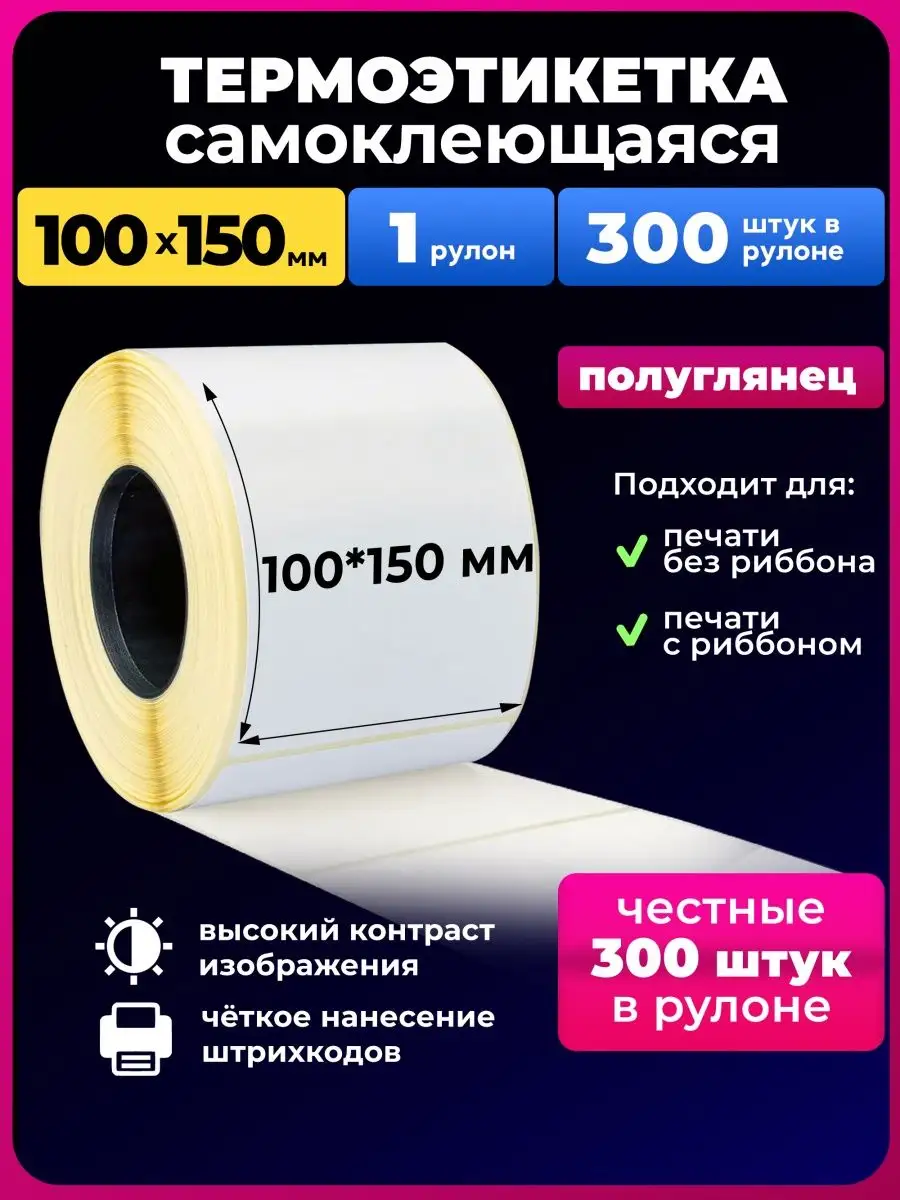 Термоэтикетки 100х150 1 рулон.300 шт в наборе