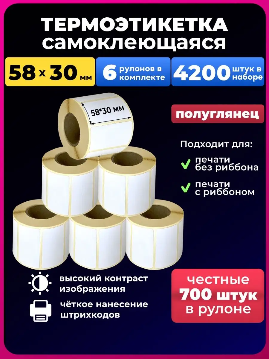 Термоэтикетки 58х30 6р.700 этикеток.