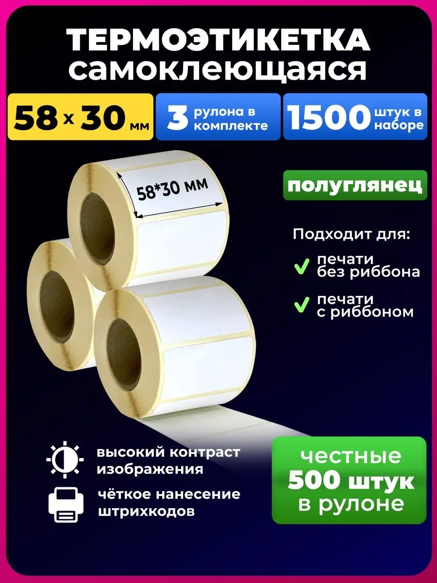 "Термоэтикетки 58х30 500 ЭКО без печати изготовлены из высококачественного материала. Рулон с втулкой диаметром 40 мм. Честных 500 этикеток в рулоне - это оптимальное решение для оперативной и экономичной печати информации, необходимой для маркировки различной продукции в том числе и маркировки товаров для маркетплейсов. Описание товара: Ширина этикетки -58 мм.; Высота этикетки - 30 мм. Такая термоэтикетка 58х30 мм ЭКО может выступать в роли носителя информации о товаре или же штрих-кода. Изготавливаются из белой бездревесной бумаги с термочувствительным покрытием. В нашем ассортименте Вы найдете широкую линейку размеров термоэтикеток. Размерный ряд: термоэтикетка 75х120, термоэтикетка 58х40, термоэтикетка эко 40х30, термоэтикетка 43х25, термоэтикетка 58х60, термоэтикетка 30х20; термоэтикетка 58х30;Термоэтикеток в рулоне - 500 шт.;Внешний диаметр рулона - 85 мм. Внутренний диаметр втулки - 40 мм. Количество рулонов в упаковке - количество роликов в комплекте указано на первом фото.