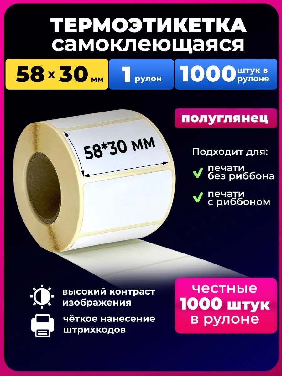 "Термоэтикетки 58х30 100 ЭКО без печати изготовлены из высококачественного материала. Рулон с втулкой диаметром 40 мм. Честных 100 этикеток в рулоне - это оптимальное решение для оперативной и экономичной печати информации, необходимой для маркировки различной продукции в том числе и маркировки товаров для маркетплейсов. Описание товара: Ширина этикетки -58 мм.; Высота этикетки - 30 мм. Такая термоэтикетка 58х30 мм ЭКО может выступать в роли носителя информации о товаре или же штрих-кода. Изготавливаются из белой бездревесной бумаги с термочувствительным покрытием. В нашем ассортименте Вы найдете широкую линейку размеров термоэтикеток. Размерный ряд: термоэтикетка 75х120, термоэтикетка 58х40, термоэтикетка эко 40х30, термоэтикетка 43х25, термоэтикетка 58х60, термоэтикетка 30х20; термоэтикетка 58х30;Термоэтикеток в рулоне - 100 шт.;Внешний диаметр рулона - 85 мм. Внутренний диаметр втулки - 40 мм. Количество рулонов в упаковке - количество роликов в комплекте указано на первом фото. Перейдя в профиль магазина Unzi, можно найти и подобрать другие размеры термоэтикеток, таких размеров как:58/30, 58/40, 58/60, 40/30, 75/120, 30/20, 43/25, 100/150, 58х30, 58х40, 58х60, 40х30, 75х120, 30х20, 43х25, 100х150.Всего этикеток в упаковке: указано на первом фото. Области применения термоэтикеток Unzi: термоэтикетки имеют самую широкую сферу применения отлично подходит для:- Для маркетплейсов: для маркировки товаров поставщиков маркетплейсов;- В магазинах, аптеках : маркировка товаров/продукции;- Дома: на данном виде этикеток можно писать маркером, ручкой или карандашом;- Логистических комплексах складах для маркировки грузов;- Весы: маркировка весовых товаров;- На производствах: для контроля этапов производства;- Интернет магазинах: для маркировки отправлений или товаров на складе. Размер этикетки 58х30 мм. соответствует стандартам OZON для маркировки товаров поставщика.